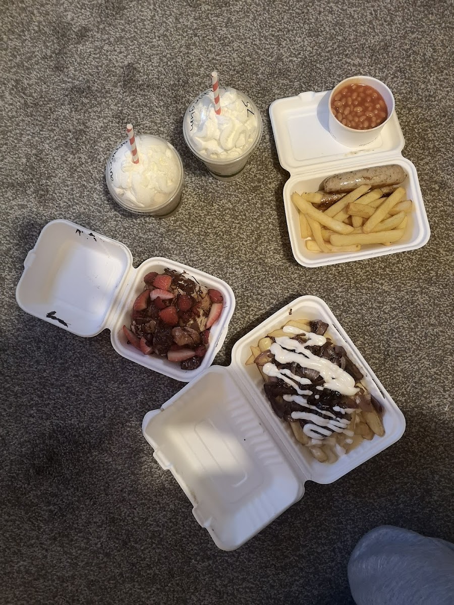 The menu boasts an array of popular offerings, from decadent burgers like the Double Beef Burger and the Southern Fried Chicken Burger, both priced at £10.99, to lighter options like wraps and paninis. The wraps, featuring fillings such as Southern Fried Chicken and Halloumi, come in at affordable prices, making them perfect for a quick lunch. If you're in the mood for something warm and comforting, the toasted sandwiches—like the delightful Bacon, Brie & Cranberry—should not be missed, providing a flavorful experience for just £8.25.