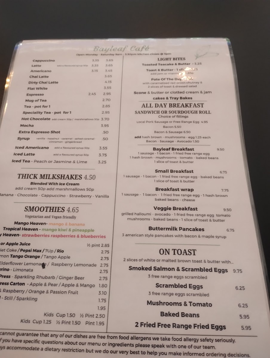 Families will appreciate the thoughtful Children's Menu, with tasty options starting at just £4.95. Visitors rave about the welcoming atmosphere, highlighted by friendly service and a clean environment. Customer testimonials praise the hearty breakfast offerings, with many returning for the hospitality and cozy ambiance. Whether you're stopping in for a quick bite or a leisurely meal outdoors, Bayleaf Cafe is the perfect spot to indulge in excellent food and warm company. Don’t miss out on this Exmouth gem!